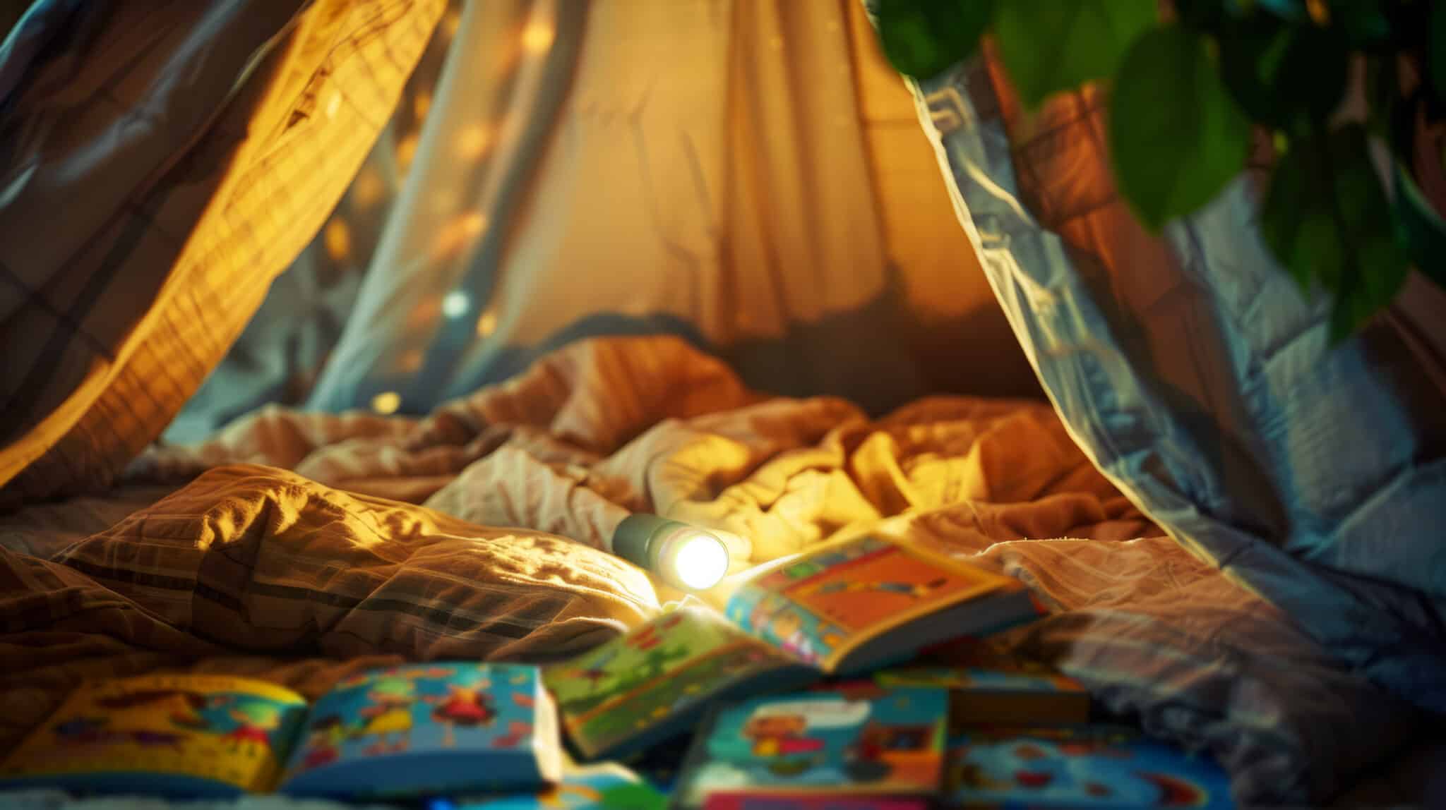Besonders beliebt sind Taschenlampengeschichten. Einer beginnt mit einem Satz, der nächste erzählt weiter. Durch das gedämpfte Licht fühlt sich selbst eine einfache Geschichte plötzlich viel spannender an.