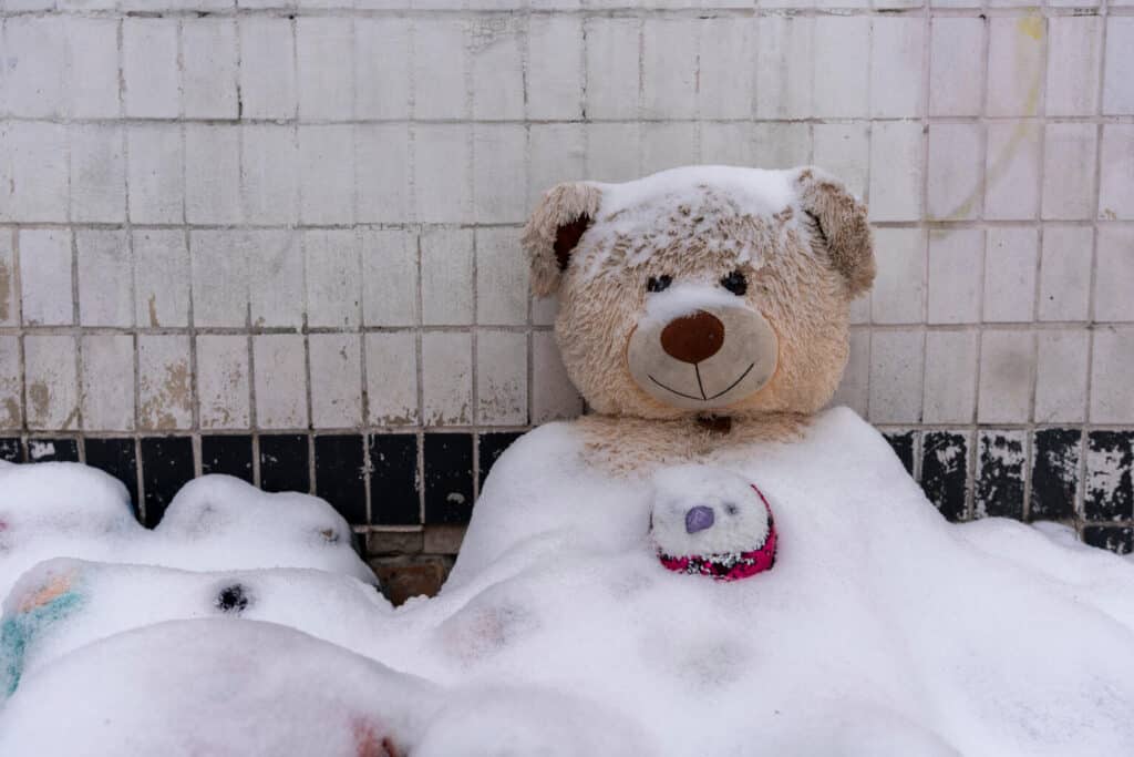 „Arina wurde weniger als einen Monat nach Beginn des groß angelegten Krieges geboren“, sagt Svitlana leise. „Die Jahre des Krieges lassen sich an den Jahren ihres Lebens abzählen. Sie hat nie Frieden gekannt.“ Dieser Winter war der bisher härteste, fügt sie hinzu. Die Angriffe sind häufiger geworden und dauern länger, da die Temperaturen weiter sinken.